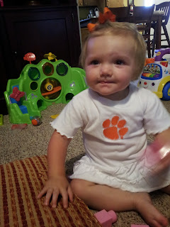 Saturday, Wes went to work and Paige and hung around the house and cleaned up a little bit. Jodi brought lunch over and the three of us hung out that afternoon. Wes came home after work and graced us with his presence. He is something else sometimes! He left that afternoon to go hunting and it was time for some football finally! Our tigers played at Syracuse and we had an excited game. We were accused of running up the score in the first half but you never know what the 3rd quarter will be like and thank god we scored a lot in the first half...Syracuse started scoring in the 3rd but we ended up winning big! The coach for Syracuse really showed out and decided to cruse Dabo out and was caught on camera...